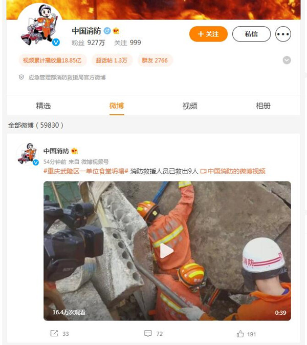 應(yīng)急管理部消防救援局官方微博“中國消防”截圖