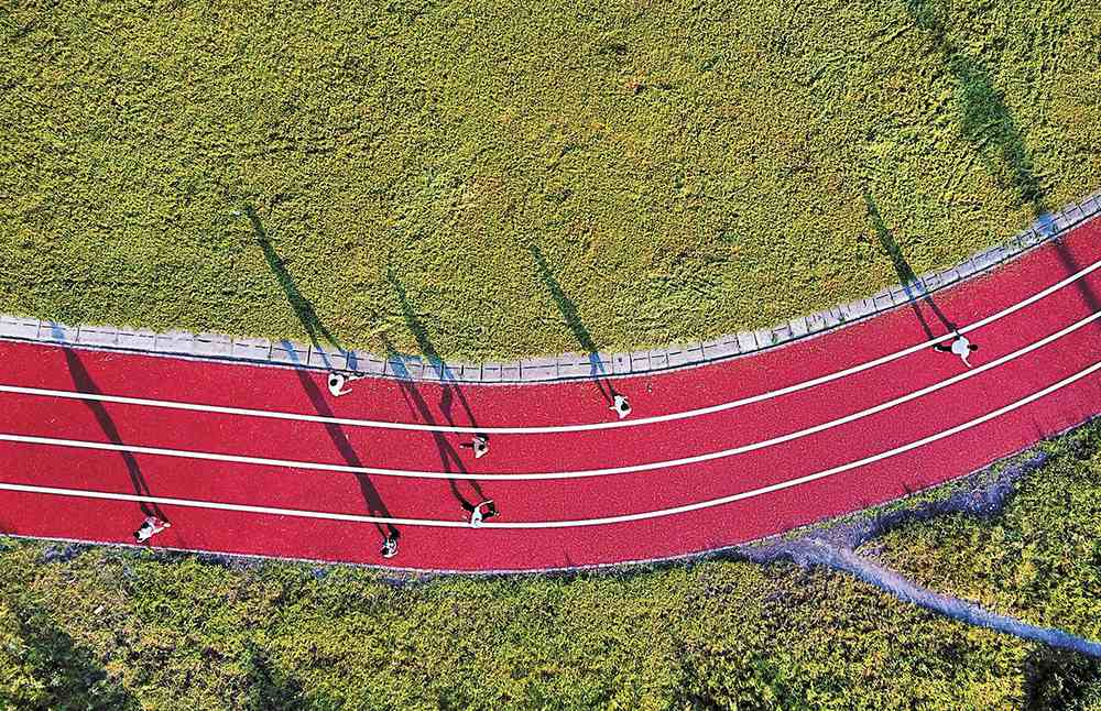 居民在大江足球場(chǎng)跑道上鍛煉。記者 謝智強(qiáng) 攝\視覺重慶