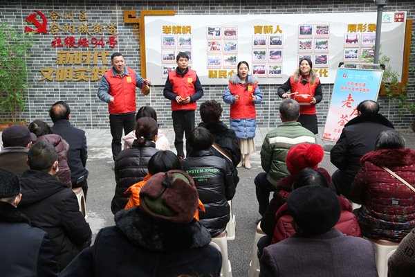 志愿者用“三句半”的形式宣講。合陽城街道供圖