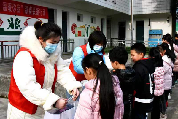 志愿者為留守兒童送上新春禮物。共青團(tuán)綦江區(qū)委供圖