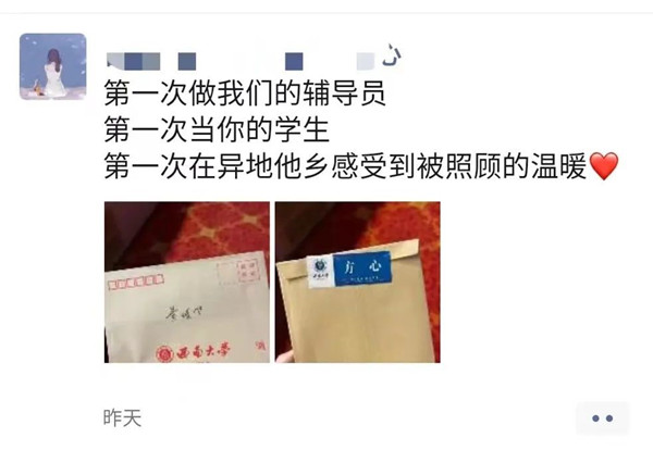 學(xué)生收到輔導(dǎo)員親筆信。西南大學(xué)供圖