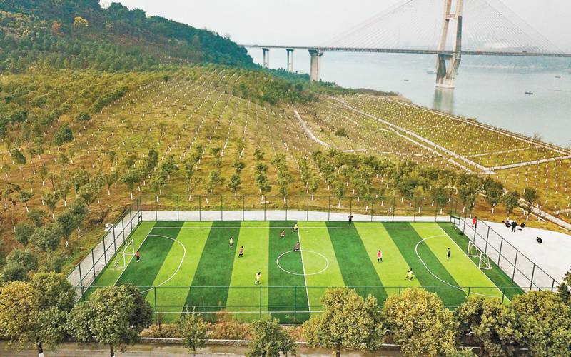 此前,該空地上非法傾倒了大量垃圾,最集中的一處更是形成了長(zhǎng)12米、寬9米的垃圾帶。在垃圾帶下方100余米處,便是長(zhǎng)江主干道。去年8月,江南街道辦事處將垃圾清除后,在此新建了一個(gè)社區(qū)足球場(chǎng),并持續(xù)對(duì)周邊區(qū)域進(jìn)行綠化與配套設(shè)施修復(fù)!艾F(xiàn)在孩子們喜歡來(lái)這里玩耍,我們也經(jīng)常來(lái)散步!笔忻駥(duì)此稱(chēng)贊不已。