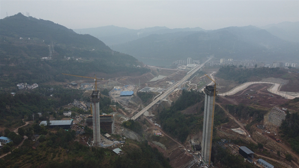 人民網(wǎng)重慶1月16日電 1月15日,云開高速項目黃石特大橋主墩封頂儀式舉行。高130.5米9號墩順利封頂。