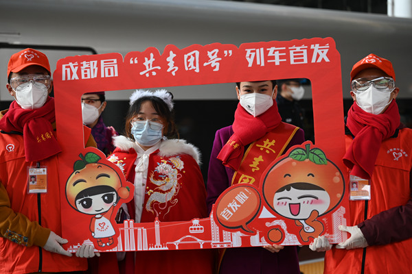 成渝城際鐵路"復(fù)興號(hào)"智能動(dòng)車(chē)組首開(kāi)"共青團(tuán)號(hào)"