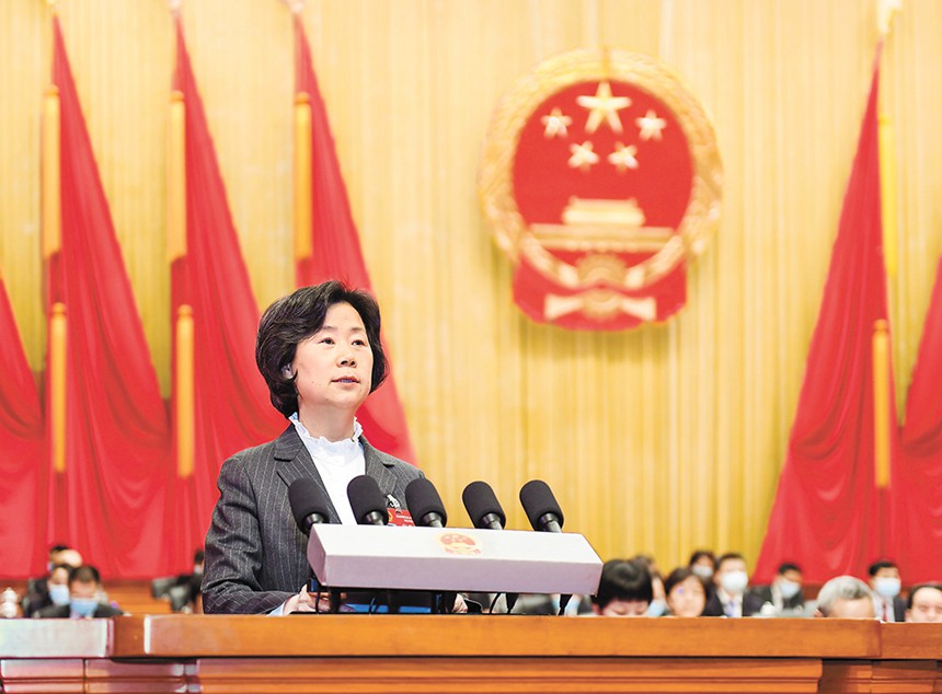 張軒說,市人大常委會始終旗幟鮮明講政治,把堅持黨的領導貫穿人大工作各方面全過程,確保人大工作始終沿著正確政治方向前進;聚焦“十四五”規(guī)劃實施、成渝地區(qū)雙城經濟圈建設等重大任務,助力經濟社會發(fā)展;全年審議通過法規(guī)案22件,涉及地方性法規(guī)和單行條例31件,加強經濟發(fā)展領域立法,創(chuàng)新社會治理領域立法,強化民生保障領域立法,完善立法工作機制,注重將全過程人民民主理念貫徹到地方立法各環(huán)節(jié),深化重大立法項目由人大和政府負責人擔任雙組長工作機制,豐富“小切口”立法等形式,不斷提高立法質量和效率;圍繞促進經濟平穩(wěn)運行、推動生態(tài)環(huán)境保護、促進民生福祉改善、維護社會公平正義,全年聽取審議報告36項,開展執(zhí)法檢查7項、工作評議1項、專題詢問1項,深化備案審查工作;依法行使決定權任免權,加強換屆工作指導,依法選舉產生區(qū)縣人大代表12134名、鄉(xiāng)鎮(zhèn)人大代表49853名;37個區(qū)縣、784個鄉(xiāng)鎮(zhèn)召開了新一屆人民代表大會第一次會議;不斷健全代表工作機制,持續(xù)提升服務保障水平,豐富代表聯(lián)系群眾的內容形式,代表主體作用有效發(fā)揮;強化政治機關意識,加強人大自身建設。
