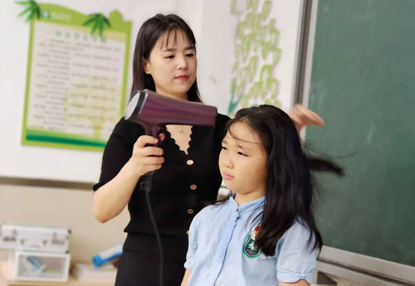 “我認為教師要培養(yǎng)有生存能力的社會人,要有交際表達、為人處世、與人為善的能力,要學會基本的生活技能。在日常教學中,我會關(guān)注孩子們的口語表達,說話的音量、吐字、面部表情、邏輯條理。在同學相處中很難杜絕矛盾的發(fā)生,重要的是矛盾發(fā)生后如何處理,用什么方法處理,有一顆強大的內(nèi)心,學會和周圍人群相處!痹谏钪校瑮罨鄄粌H鼓勵學生大聲說,還鼓勵他們大膽做,她并總不把學生當成孩子,也當成朋友,常常在“朋友”面前“示弱”,讓他們幫自己做一些力所能及的事,培養(yǎng)責任感。