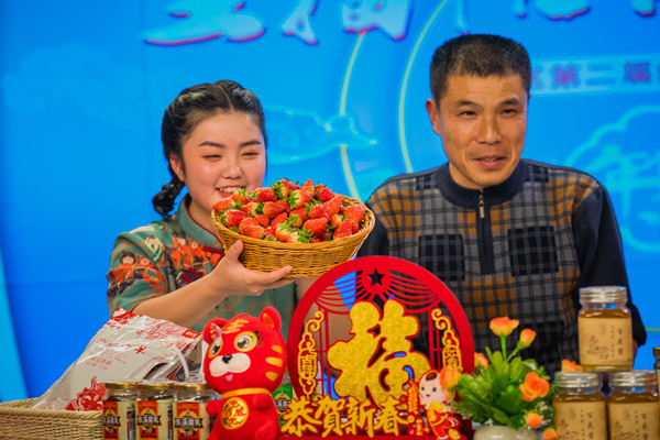 人民網(wǎng)重慶1月25日電 “大家晚上好,這里是主播陪你過大年綦江區(qū)第二屆美食年貨節(jié)的現(xiàn)場。”1月24日晚上8點(diǎn)30分,在綦江區(qū)融媒體中心演播室內(nèi),一場熱火朝天的“鄉(xiāng)村美味”美食年貨推介正在有聲有色地展開。安穩(wěn)羊肉、東溪豆腐乳、趕水蘿卜干……各類綦江本土美食輪番上陣,賺足吃貨們的眼球。