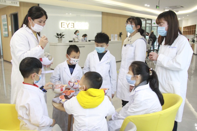 科普志愿者給小朋友講解眼健康知識(shí)。愛(ài)爾眼科重慶南坪醫(yī)院供圖