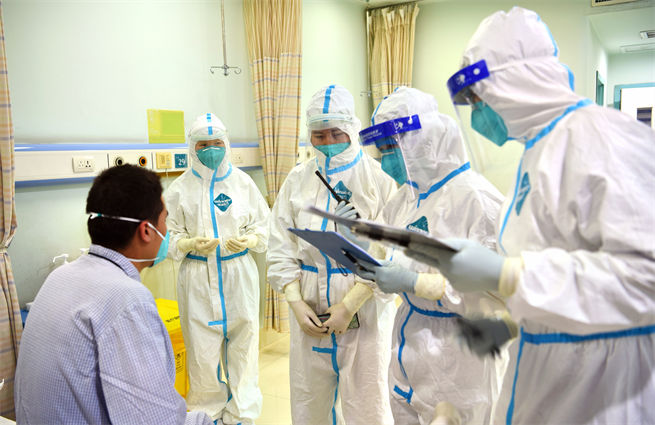 工作人員前往隔離病房對密接者展開流調(diào)。曾理/攝