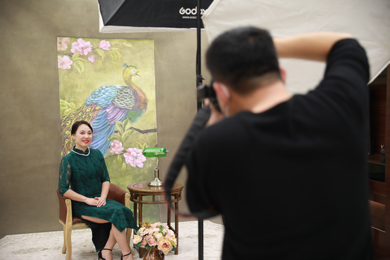 客戶(hù)們或舉著大紅燈籠,或拿著中國(guó)結(jié),穿著喜慶的新年裝,有序拍攝著照片,現(xiàn)場(chǎng)其樂(lè)融融。隨著攝影師按下快門(mén)鍵,一張張象征著闔家團(tuán)圓、幸福美好的全家福新鮮出爐。
