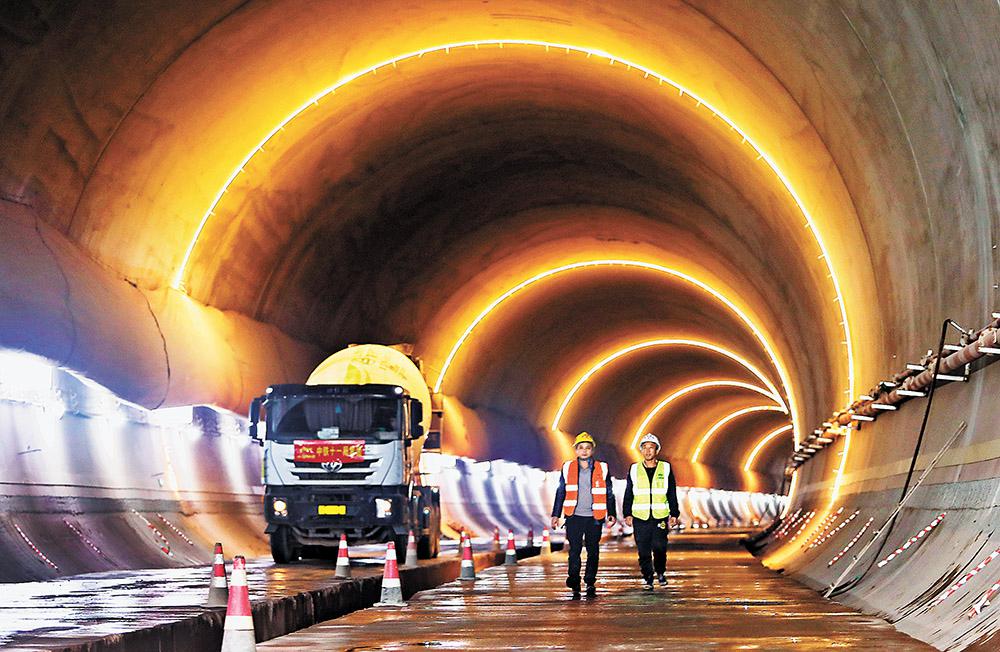 2月6日,在渝昆高鐵中梁山隧道項(xiàng)目工地,中鐵十一局的技術(shù)工人正在緊張施工。春節(jié)期間現(xiàn)場不停工,超過5000名參建人員堅(jiān)守在一線崗位,保證預(yù)期施工進(jìn)度。