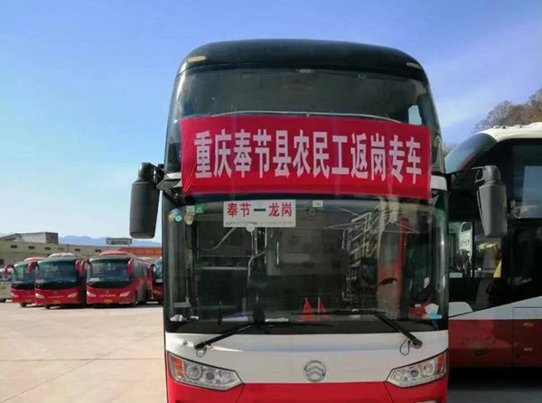 交通運(yùn)輸部門積極調(diào)度省際客運(yùn)汽車保障運(yùn)力,已“點(diǎn)對(duì)點(diǎn)”輸送奉節(jié)縣務(wù)工傳統(tǒng)地廣東、浙江、江蘇、福建等東部省份106車次3828人。部分鄉(xiāng)鎮(zhèn)由領(lǐng)導(dǎo)班子帶隊(duì),輪流值守長(zhǎng)途汽車站點(diǎn),配備感冒藥品、防疫口罩、開水,為務(wù)工群眾送去溫暖。
