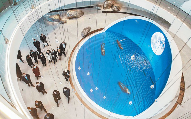 寸灘國際新城·構象臺內(nèi)部分3層,一層為寸灘片區(qū)歷史文化和寸灘國際新城規(guī)劃展示區(qū),二層為沉浸式體驗區(qū),三層為多功能廳。各區(qū)域充分運用聲、光、電、機械、數(shù)碼、信息、多媒體和網(wǎng)絡等手段,并巧妙設計獨特的懸空步道,營造獨特的參觀體驗。