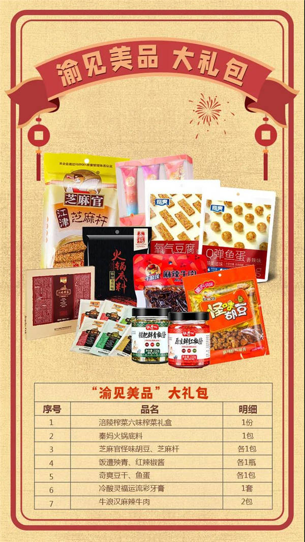 同時(shí),更有由涪陵榨菜、秦媽、芝麻官、飯?jiān)庋、奇爽、冷酸靈、牛浪漢提供的“渝見(jiàn)美品”大禮包,為廣大市民再添一份節(jié)日的喜悅。“接下來(lái),還有更多重慶特色消費(fèi)品品牌為市民發(fā)放專屬互動(dòng)福利!被顒(dòng)相關(guān)負(fù)責(zé)人介紹。(胡虹、甘靖雯、馬春鵬)