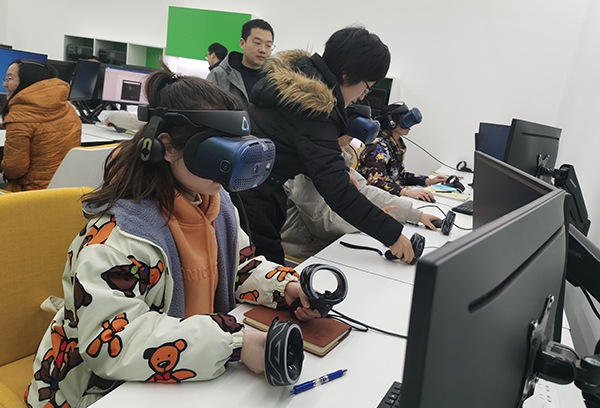 學(xué)生正在上虛擬現(xiàn)實(shí)教育程序設(shè)計(jì)課。袁杰攝