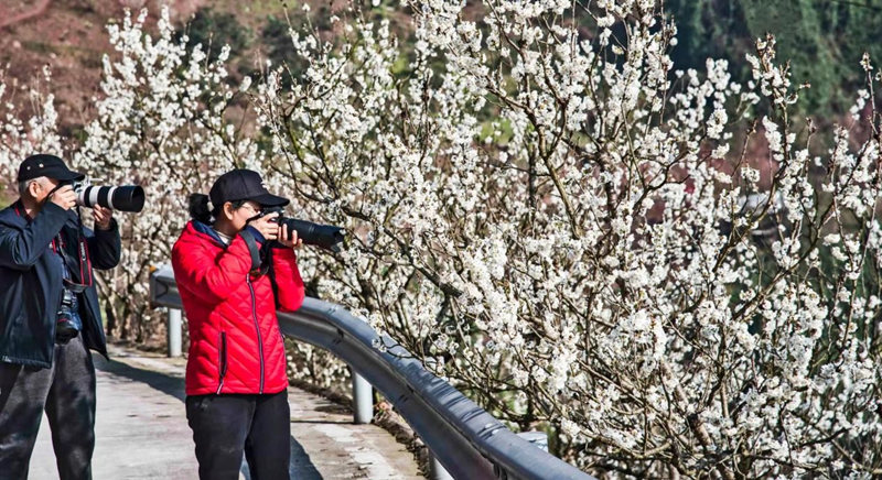 櫻桃花盛開,吸引不少攝影愛好者前來拍照。玉峰山鎮(zhèn)供圖