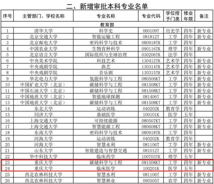 新增審批本科專業(yè)名單。華龍網(wǎng)-新重慶客戶端 發(fā)