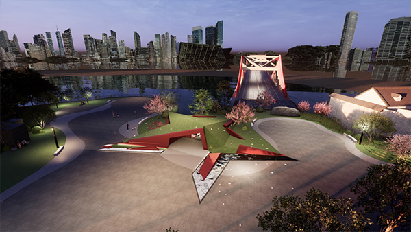 據(jù)介紹,該出入口以“城市之星”為設(shè)計(jì)理念,考慮建筑與周邊環(huán)境關(guān)系,采用地景建筑的設(shè)計(jì)手法,從視覺上減少建筑構(gòu)筑物對周邊環(huán)境的影響,將構(gòu)筑物融于整體環(huán)境中,使入口構(gòu)筑物消隱在城市天際線中。其不僅作為一個普通的軌道交通出入口,也是中山四路的景觀節(jié)點(diǎn),屬于城市文化重要展示的一部分,展示城市的精神風(fēng)貌。