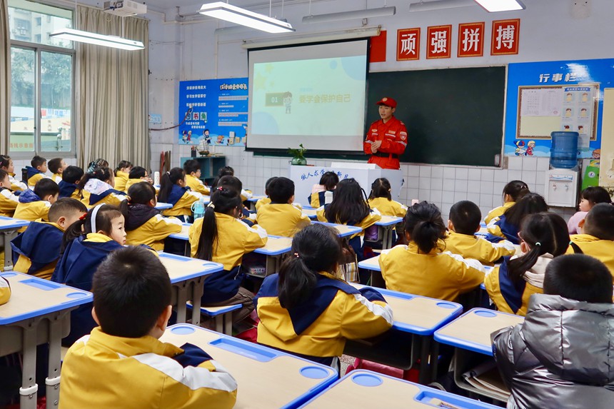 音樂場館中,“紅星管樂團”的孩子們奏響樂器,感悟音符間的樂趣與靈動;科技大樓中,孩子們盡情在互動設(shè)備中體驗科技的樂趣,探究光發(fā)射和光接收的“無皮鼓”,了解電壓的“怒發(fā)沖冠”;來自重慶安全技術(shù)學(xué)院應(yīng)急救援隊的隊員們,則利用延時活動時段,帶領(lǐng)孩子們開展包括學(xué)習(xí)心肺復(fù)蘇技能在內(nèi)的“生命健康教育”課程……