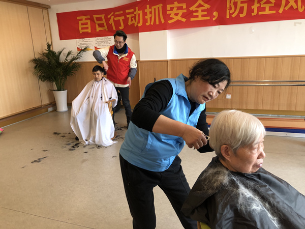 正街社區(qū)志愿者為老人免費(fèi)理發(fā)。馮良攝