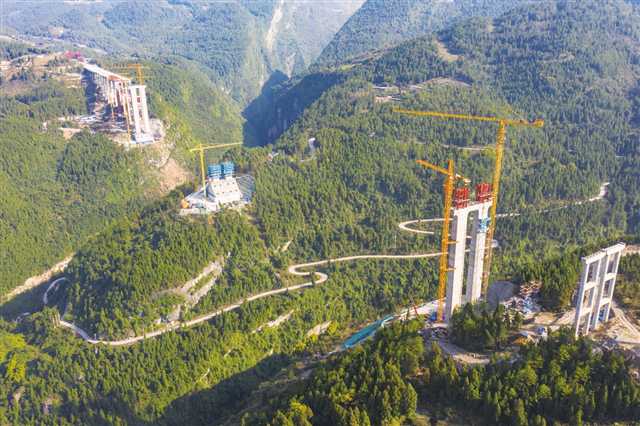 渝湘復(fù)線巴彭路雙堡特大橋施工現(xiàn)場