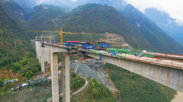 雙河口特大橋修建現(xiàn)場(chǎng)。吳廷貴攝