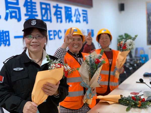 “我干工地這么久了,還是第一次過‘三八婦女節(jié)’!表椖颗び严膶捪寂d奮地說:“在活動中,他們教我們怎么選擇、配色、怎么綁扎,我們都給自己做了一束花,我覺得很開心,也很有意義!