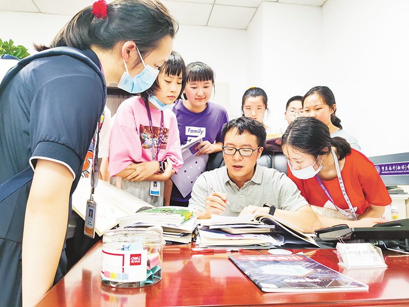 周強(qiáng)正在輔導(dǎo)學(xué)生。(受訪者供圖)