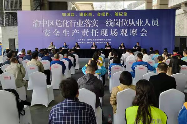 渝中區(qū)?;袠I(yè)落實一線崗位從業(yè)人員安全生產責任現場觀摩會現場。渝中區(qū)應急管理局供圖