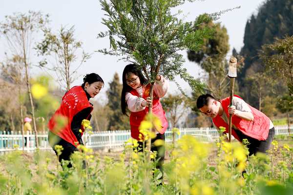 人民網(wǎng)重慶3月11日電 3月11日,重慶市黔江區(qū)水田鄉(xiāng)黨員干部、區(qū)法院干部職工、志愿者等120余人,在水田鄉(xiāng)紅豆杉長壽文化園開展義務(wù)植樹活動,為大地添新綠。