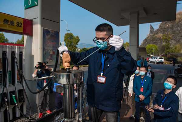 活動(dòng)中,參與人員深入了解了消防池、卸油區(qū)、便利店等功能區(qū)。四分院計(jì)量檢定工作人員對加油機(jī)計(jì)量、油品質(zhì)量、油氣回收等進(jìn)行測試和講解;市場監(jiān)管部門工作人員向消費(fèi)者宣傳維權(quán)常識;加油站工作人員進(jìn)行了誠信經(jīng)營宣誓活動(dòng)。