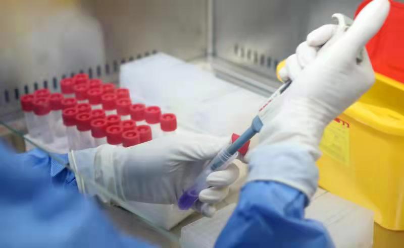 醫(yī)務(wù)人員在核酸檢測(cè)實(shí)驗(yàn)室加入標(biāo)本。陳仕川 攝