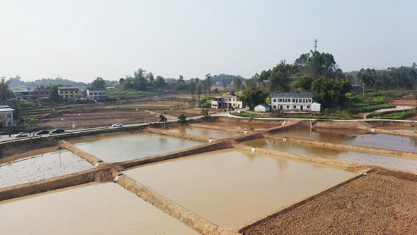 重慶市銅梁區(qū)水星村村書記張邦中人逢喜事精神爽,樂呵呵地站在田壟上,“一、二、三......”正壓著指頭數(shù)田地,目前,水流浸潤土壤,正等著水稻種植。