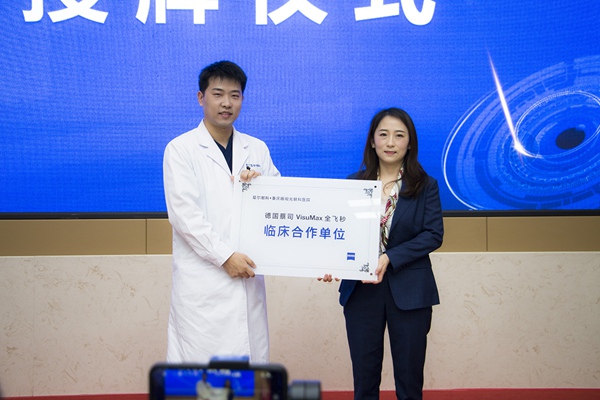 余瓊武(右一)向重慶眼視光眼科醫(yī)院授予“德國蔡司VisuMax全飛秒臨床合作單位”。重慶眼視光眼科醫(yī)院供圖