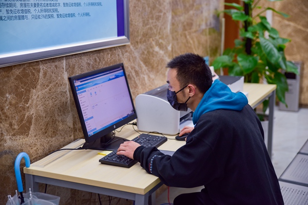 在江北不動(dòng)產(chǎn)登記中心,市民使用公共電腦以個(gè)人身份登錄電子稅務(wù)局,自助查詢(xún)并免費(fèi)打印個(gè)人存量房增值稅電子普通發(fā)票。陳瀾攝