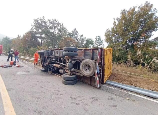 貨車側(cè)翻,男子被困副駕駛幾近昏迷……