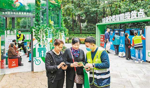 近日,渝北區(qū)回興街道科桐路社區(qū)歡樂頌小區(qū)居民蔡大爺提著兩袋垃圾下樓,刷卡打開了綠色的智能收集箱,將一袋廚余垃圾扔了進(jìn)去。隨后,他的“綠色賬戶”里立刻多了幾個積分。