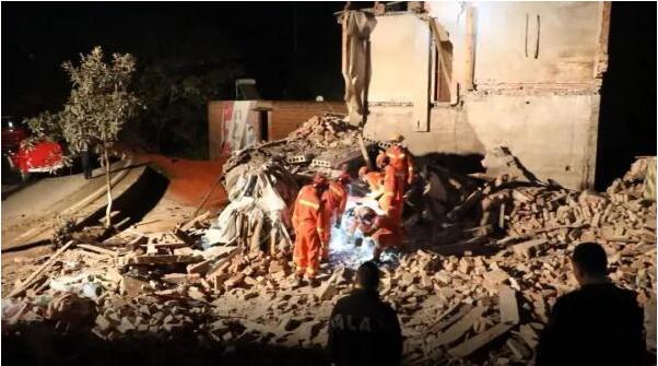 接警后消防救援人員立即出動(dòng)。經(jīng)現(xiàn)場(chǎng)勘查發(fā)現(xiàn),房屋幾乎坍塌了一大半,現(xiàn)場(chǎng)散落大量磚塊,其中一名被困者(戶主家人)已被聞?dòng)嵹s來的村民救出并送往了醫(yī)院,而大貨車司機(jī)仍被埋在廢墟中。