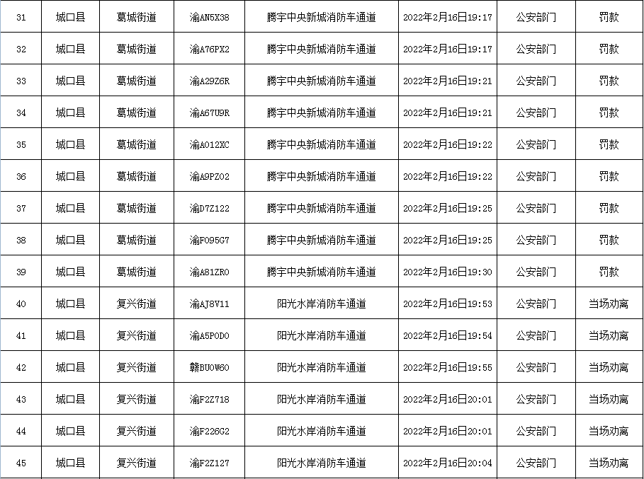 2月18日下午,記者從重慶市消防救援總隊了解到,為持續(xù)深化“生命通道”大曝光大整治大執(zhí)法行動,針對春節(jié)冬奧期間“生命通道”堵塞占用現(xiàn)象反彈的現(xiàn)象,1月25日起,重慶各地消防、城市管理、公安、住房城鄉(xiāng)建設(shè)部門聯(lián)合開展執(zhí)法糾違行動,嚴(yán)查在消防車道停放車輛,私搭亂建、設(shè)置攤位,設(shè)置鐵樁、石墩、水泥墩、限高桿、架空管線等占用、堵塞消防車道違法行為。