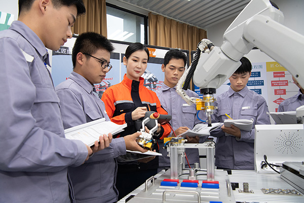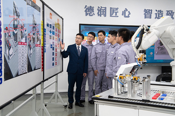 據(jù)了解,《基于視覺(jué)識(shí)別的裝配機(jī)器人應(yīng)用編程》這門課程一方面實(shí)現(xiàn)了學(xué)生所學(xué)與企業(yè)所需高度匹配,解決了校企合作中學(xué)校熱企業(yè)冷的痛點(diǎn)。該課程精準(zhǔn)對(duì)接企業(yè)崗位需求,培養(yǎng)企業(yè)準(zhǔn)員工,縮小了育人目標(biāo)與企業(yè)崗位需求的差距。每到畢業(yè)季,各大智能制造企業(yè)提前“預(yù)定”工業(yè)機(jī)器人技術(shù)專業(yè)的畢業(yè)生,達(dá)到了“供不應(yīng)求”的程度。此外,通過(guò)比賽,參賽團(tuán)隊(duì)帶動(dòng)了更多的老師在日常教學(xué)中深入研究專業(yè)教學(xué),在教學(xué)中取長(zhǎng)補(bǔ)短、相互學(xué)習(xí),在感悟與體驗(yàn)中實(shí)現(xiàn)教學(xué)理念與教學(xué)實(shí)踐的飛躍!氨荣惖哪康牟粏螁问谦@獎(jiǎng),更重要的是提升視野、打開(kāi)思路、拓寬教育教學(xué)理念,實(shí)現(xiàn)以賽促教、教學(xué)相長(zhǎng)。”梁燕說(shuō)。