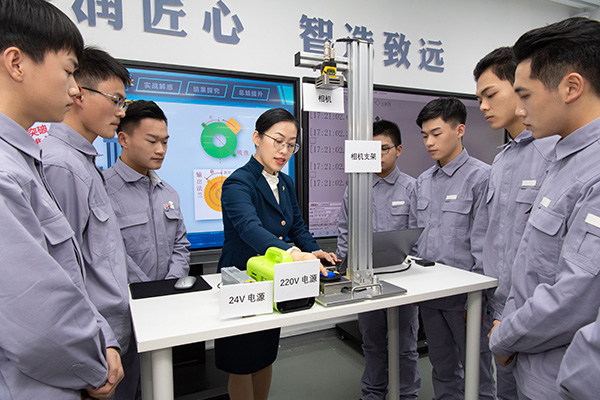 陸玉姣講解相機(jī)通訊數(shù)據(jù)測(cè)試。重慶工程職業(yè)技術(shù)學(xué)院供圖