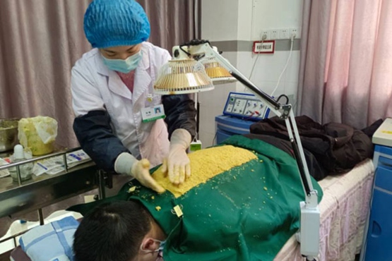 醫(yī)務(wù)人員正在為患者進行督灸治療。璧山區(qū)衛(wèi)生健康委供圖