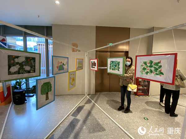 市民在參觀特需兒童繪制的美術(shù)作品。人民網(wǎng) 劉政寧攝