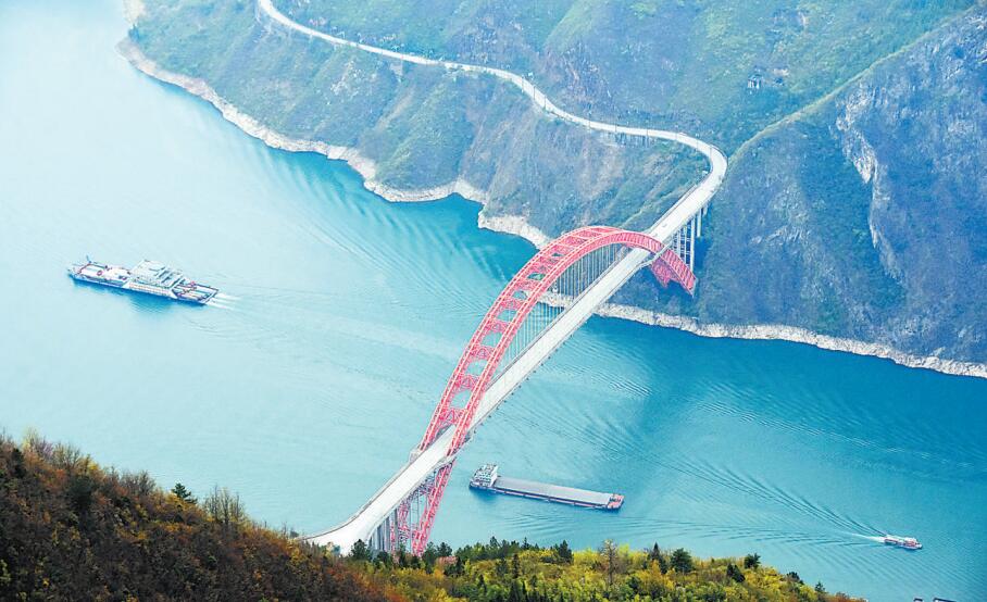 3月31日,重慶巫山縣,輪船從長(zhǎng)江大橋下駛過(guò)。近年來(lái),位于長(zhǎng)江三峽庫(kù)區(qū)的巫山縣加大交通基礎(chǔ)設(shè)施建設(shè)力度,建成長(zhǎng)江大橋、龍門大橋、桂花大橋、G42高速大寧河特大橋、鄭萬(wàn)高鐵大寧河大橋,昔日天塹變通途,“水陸空鐵”立體交通樞紐逐漸形成。