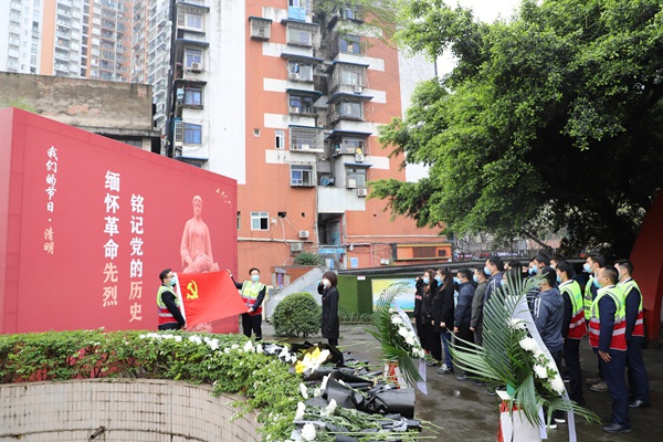當(dāng)天,來(lái)自中建八局大田灣體育場(chǎng)保護(hù)與利用項(xiàng)目黨支部、中共重慶市城市建設(shè)投資(集團(tuán))有限公司機(jī)關(guān)二支部及中共重慶園林綠化建設(shè)投資(集團(tuán))有限公司(城市更新公司)委員會(huì)的20余名黨員代表來(lái)到烈士墓,為烈士們敬獻(xiàn)了花籃和鮮花,并重溫了入黨誓詞。