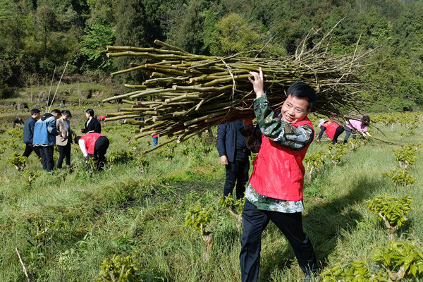 太極鎮(zhèn)新時代文明實踐所組織志愿者幫農(nóng)戶清理桑枝。黔江區(qū)委宣傳部供圖