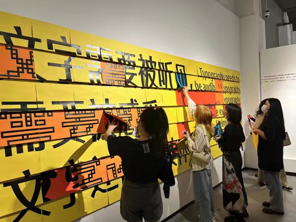 在展覽現(xiàn)場,最值得關(guān)注的就是一面“手撕字墻”,上面寫著“文字需要被聽見,需要被感受,文字還需要被體驗(yàn)”。觀眾可以通過撕掉一張張紙,來探尋背后的字體“秘密”。除此之外,鏡面墻、專屬展區(qū),多元的展覽單元也打破規(guī)則,以新的姿態(tài)讓字體設(shè)計(jì)重新想象。