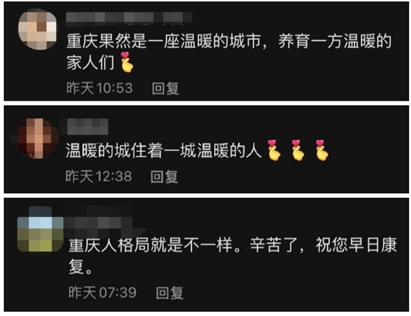 “重慶人格局就是不一樣。辛苦了,祝您早日康復(fù)!