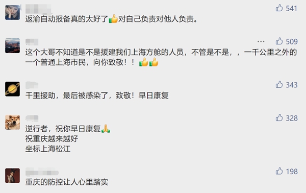 有網(wǎng)友留言說:“為主動(dòng)報(bào)備人員和重慶速度點(diǎn)贊!”