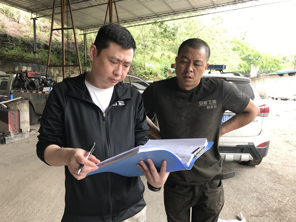 回訪涉嫌成品油非法經(jīng)營的企業(yè)。北碚區(qū)交通局供圖